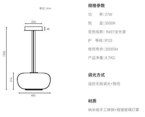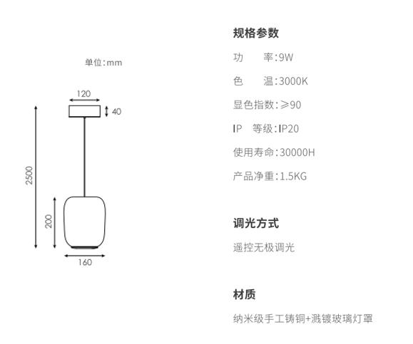 产品简介:手工吹制高硼硅玻璃,,,圆润柔和;在内部的上路光透过玫瑰金色网格铸铜件投射出类似烛火的效果,,,在空间里显得更加灵动,,,外层玻璃采用溅镀金属质感,,,自下而上渐消,,,同时镜面镀层折射环境光线,,使产品更加轻盈通透不压抑,,,下路光采用直下光,,,,满足1.5米圆桌面充足照明。。。。同时设计有防眩格栅,,,,桌面边缘的视线高度不会有直接光线照射到,,,体验舒适。。。